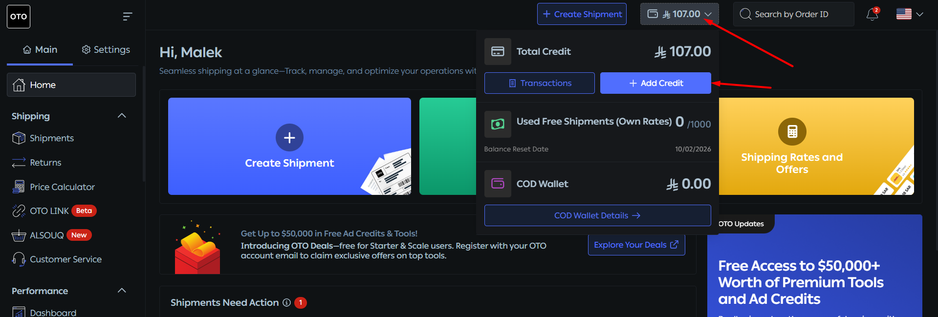 3. Click on Add Credit
