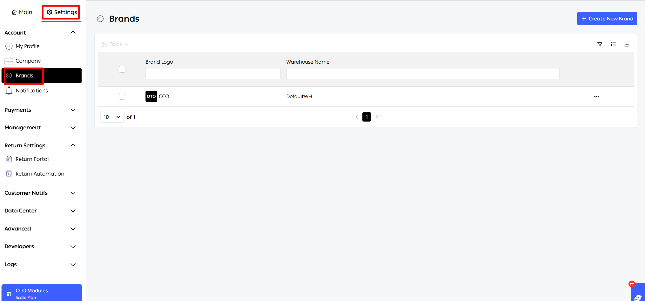 Navigate to Settings > Brands.